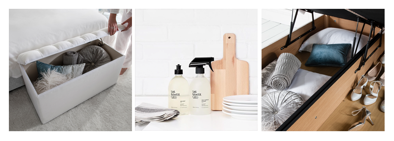 Now that you have sorted through your home, make sure that your things stay organised with various storage options. Plastic lidded storage boxes are perfect to hide away in cupboards, baskets and patterned fabric boxes look great on top of wardrobes, in the corner of a room or under the coffee table and upholstered ottomans make for a stylish, yet practical storage space.